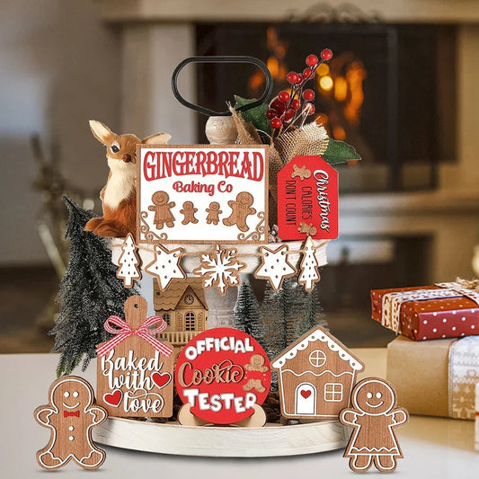 12-Piece Rustic Wooden Christmas Ornament Set – Perfect for Wall and Tray Home Decor