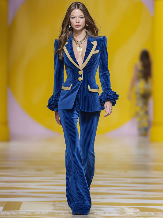 Royal Blue Vintage Corduroy Blazer with Gold Accents