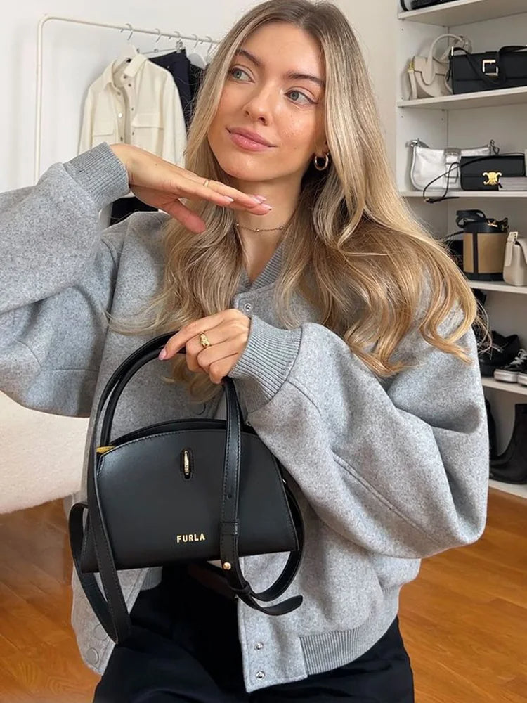 Women's Bomber Jacket – Elevate your wardrobe with this stylish wool blend jacket featuring a chic button closure and ribbed cuffs. Perfect for both casual and semi-casual occasions, this classic bomber from Kate Amsterdam combines warmth and elegant design.