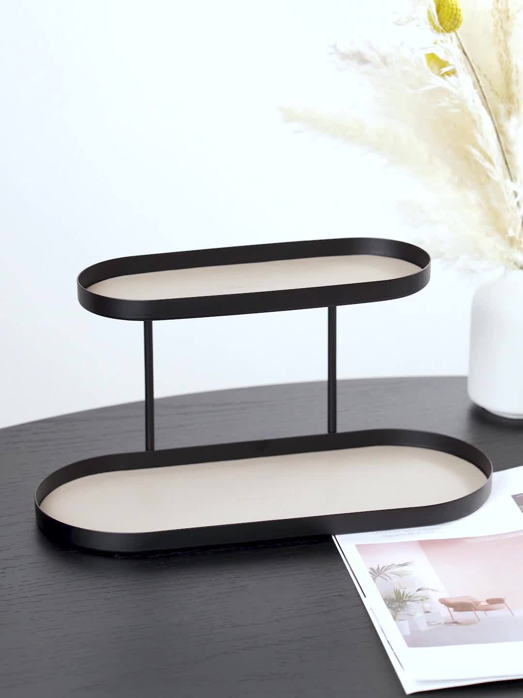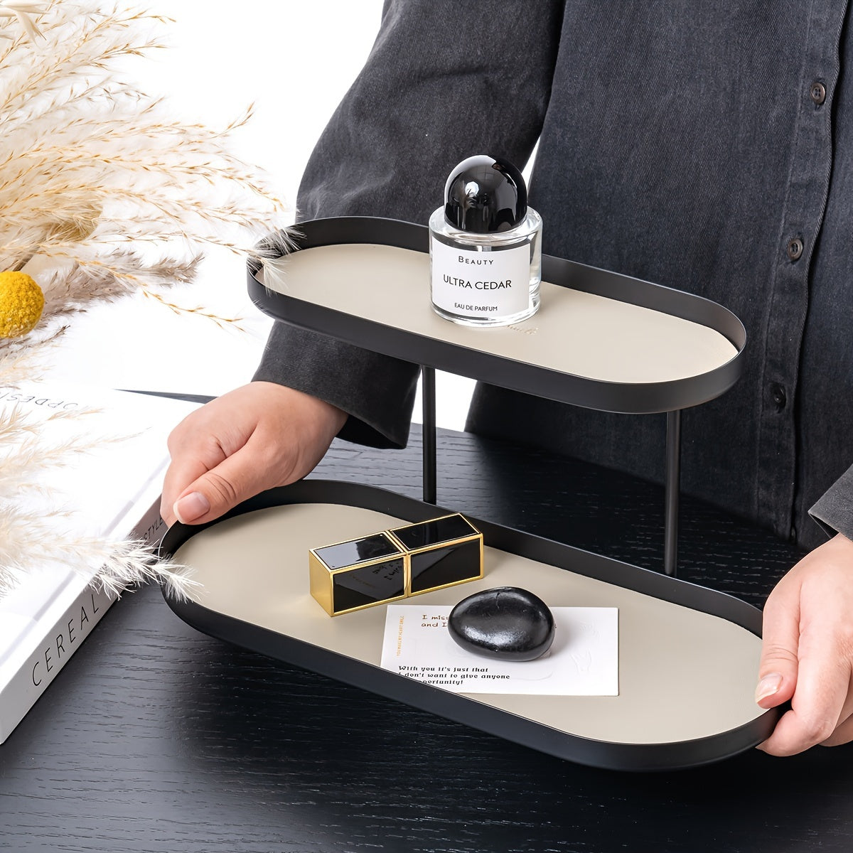 The LushLayer Double-Layer Metal Storage Rack combines style and functionality, featuring a durable metal frame and a premium faux leather tray. Perfect for your bedroom, bathroom, or living room, it keeps your essentials tidy and effortlessly stylish.